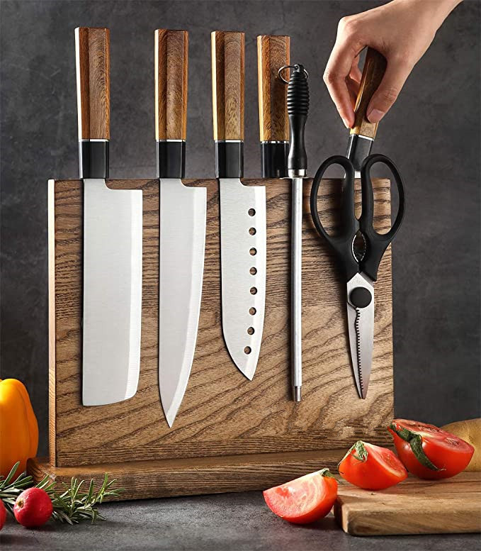 家庭用キッチン包丁棚磁気棚アカシア木創意マグネットホルダー多機能刃物収納棚