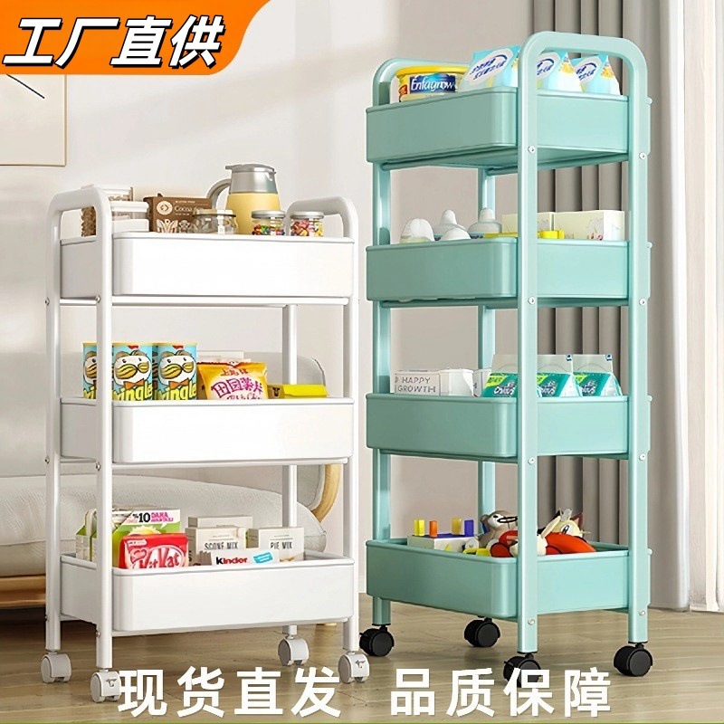 トロリー収納ラック ダブルアームレスト ホイール付き収納ラック 多層スナックラック 取り外し可能なキッチンフロア収納ラック