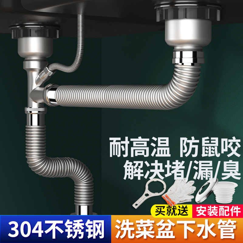 キッチンシンク排水管アクセサリー排水管ステンレスシンク排水管シンクダブルスロット消臭セット