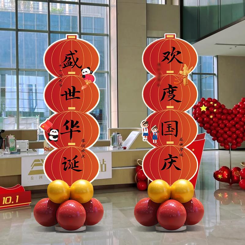 庆节商场立柱迎宾牌拍照氛围道具KT板气球布置十一店铺门口装饰金