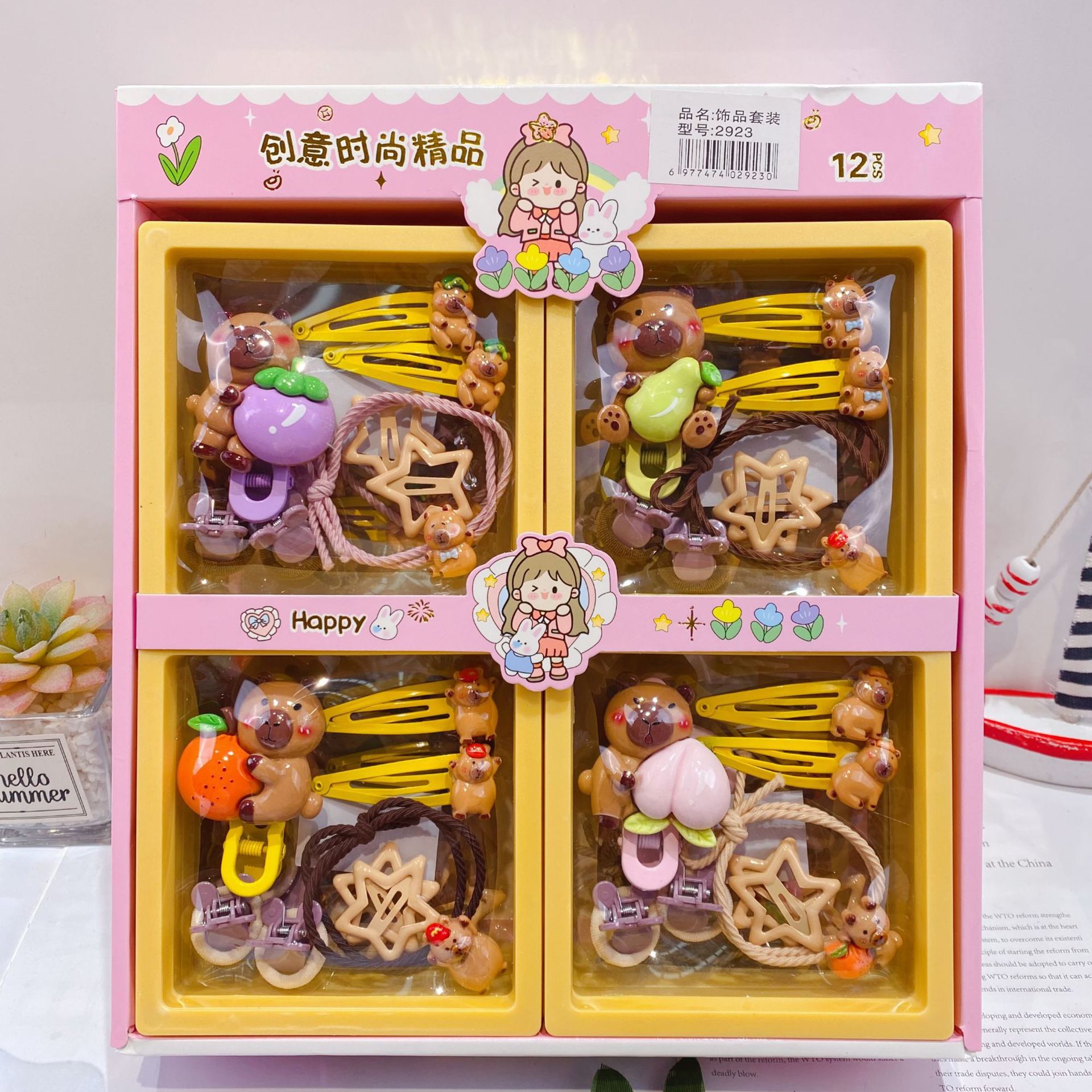 新しいカピバラ人形ゴムバンドヘアピンジュエリーセットかわいい漫画ガールハートヘアアクセサリードレスアップブティック
