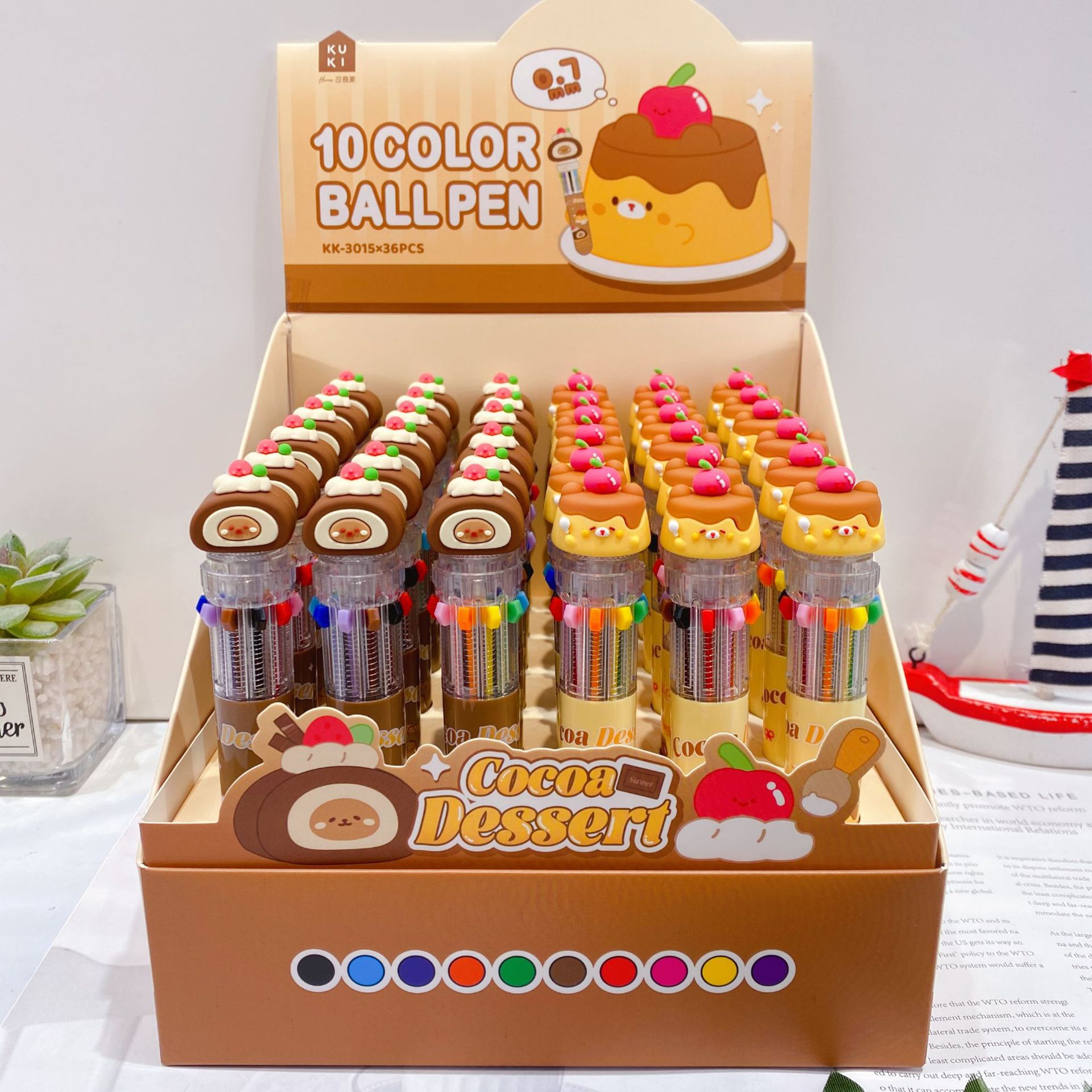 Keqi 新ケーキプディング 10 色ペンマルチカラーボールペンクリエイティブ漫画形状プッシュ式リバウンド文具ペン