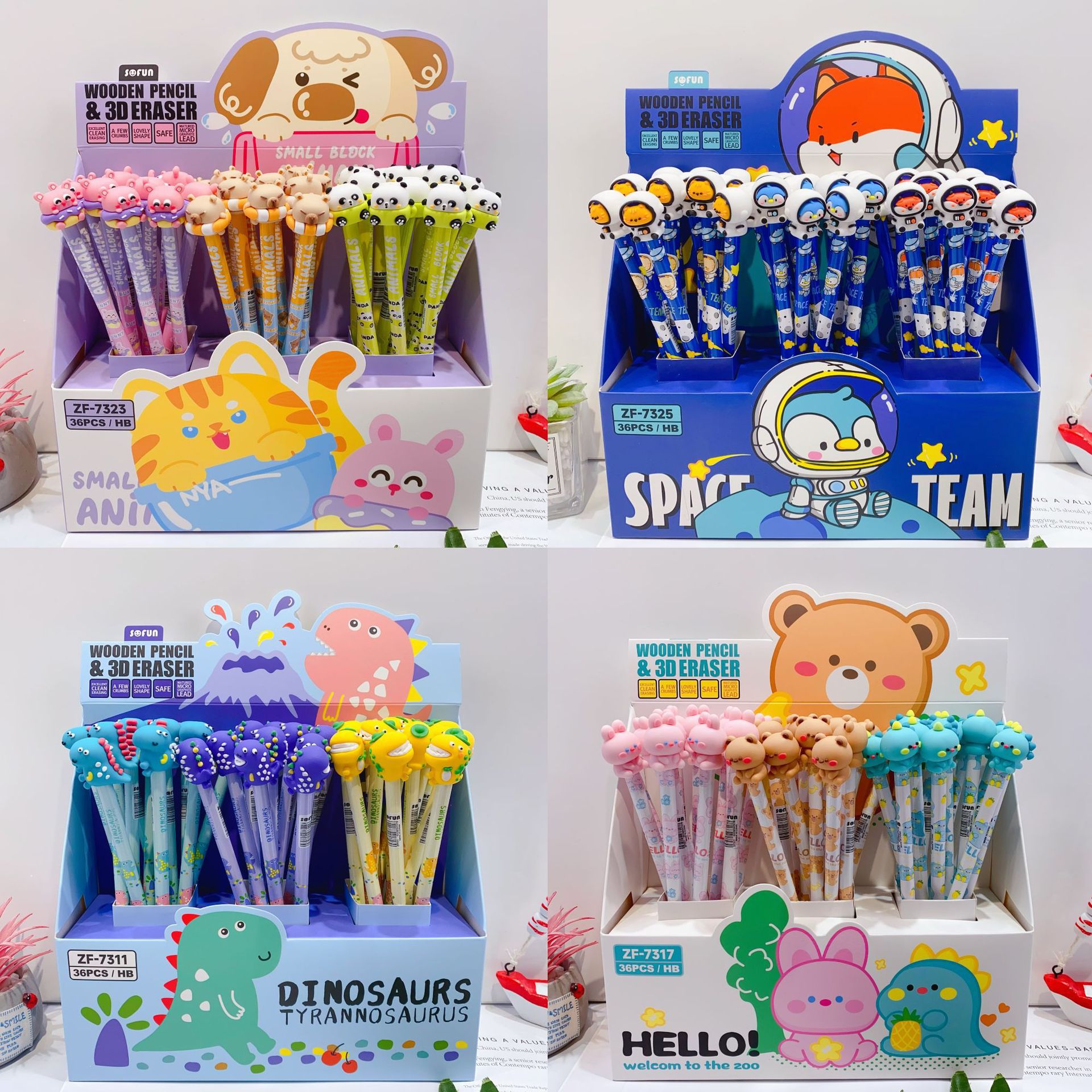 外国貿易アニメ動物パンダ3d消しゴム木鉛筆かわいい萌え宇宙飛行士HB鉛筆消しゴム頭付き