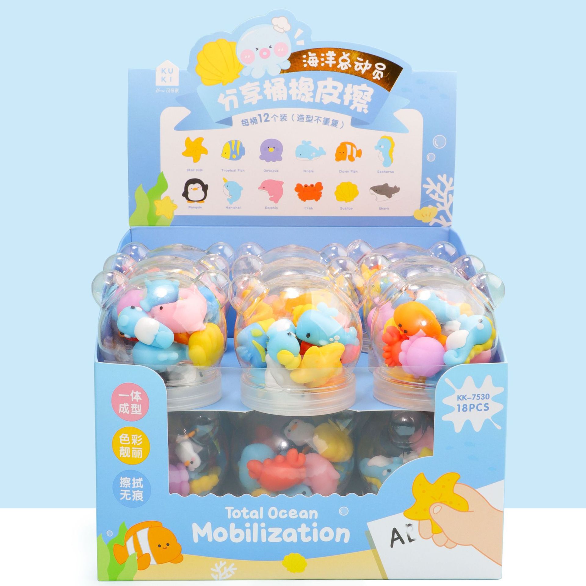 新型海洋動物総動員消しゴム共有バケツセットかわいい3D動物の形消しゴムがきれいになった