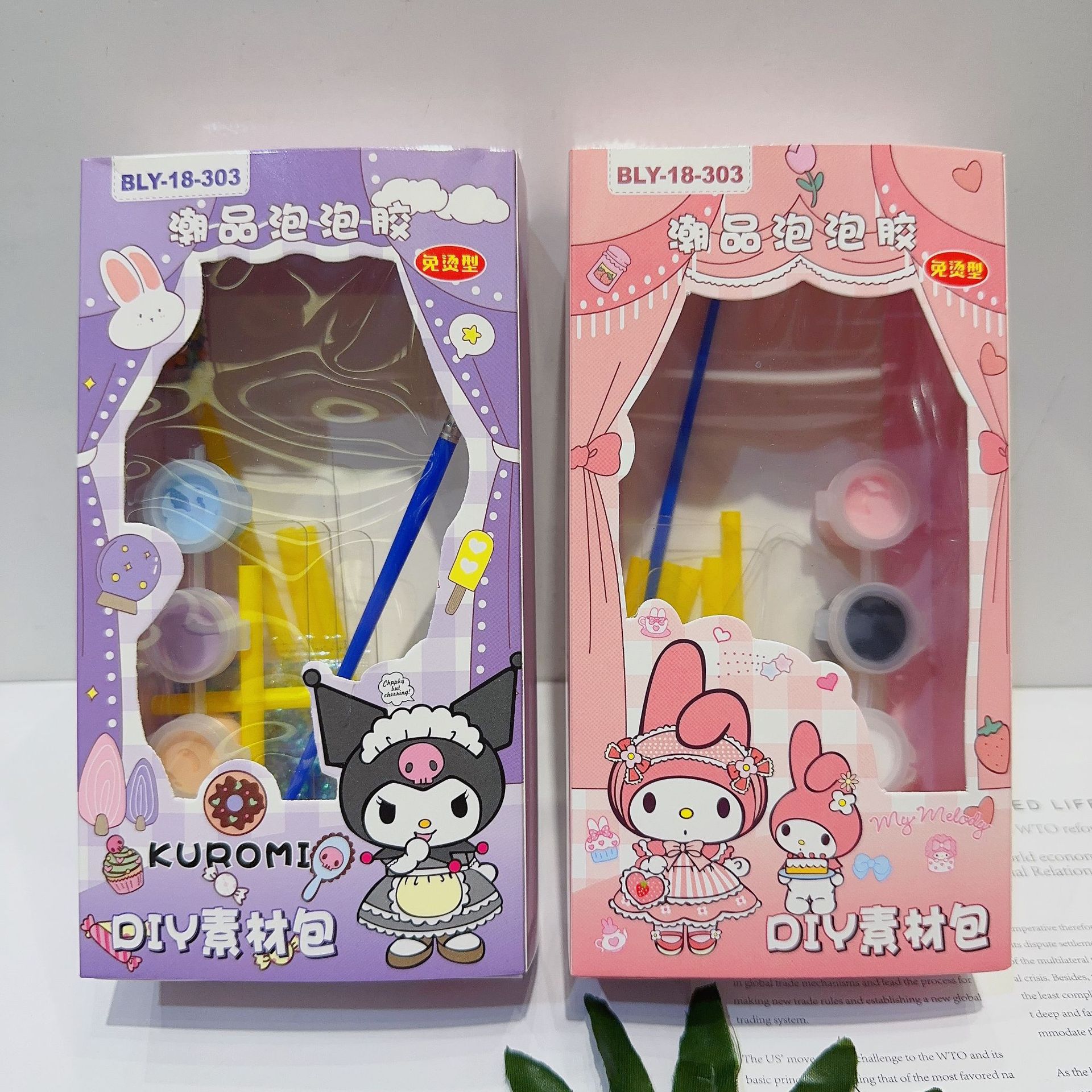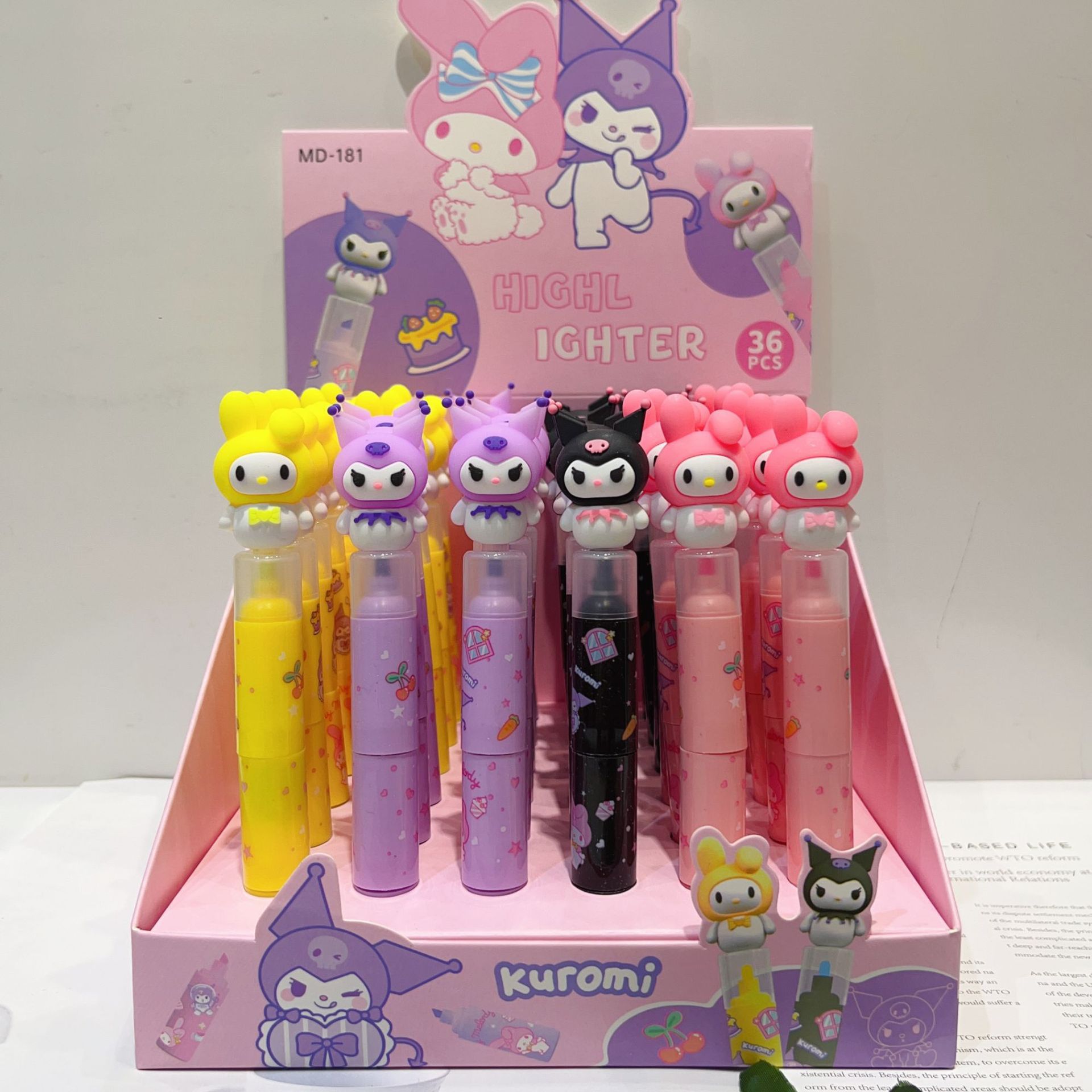 かわいい三麗欧家族の蛍光ペンの新型アニメのクロミは2色の蛍光ペンの落書きの線のマークをつづり合わせます。