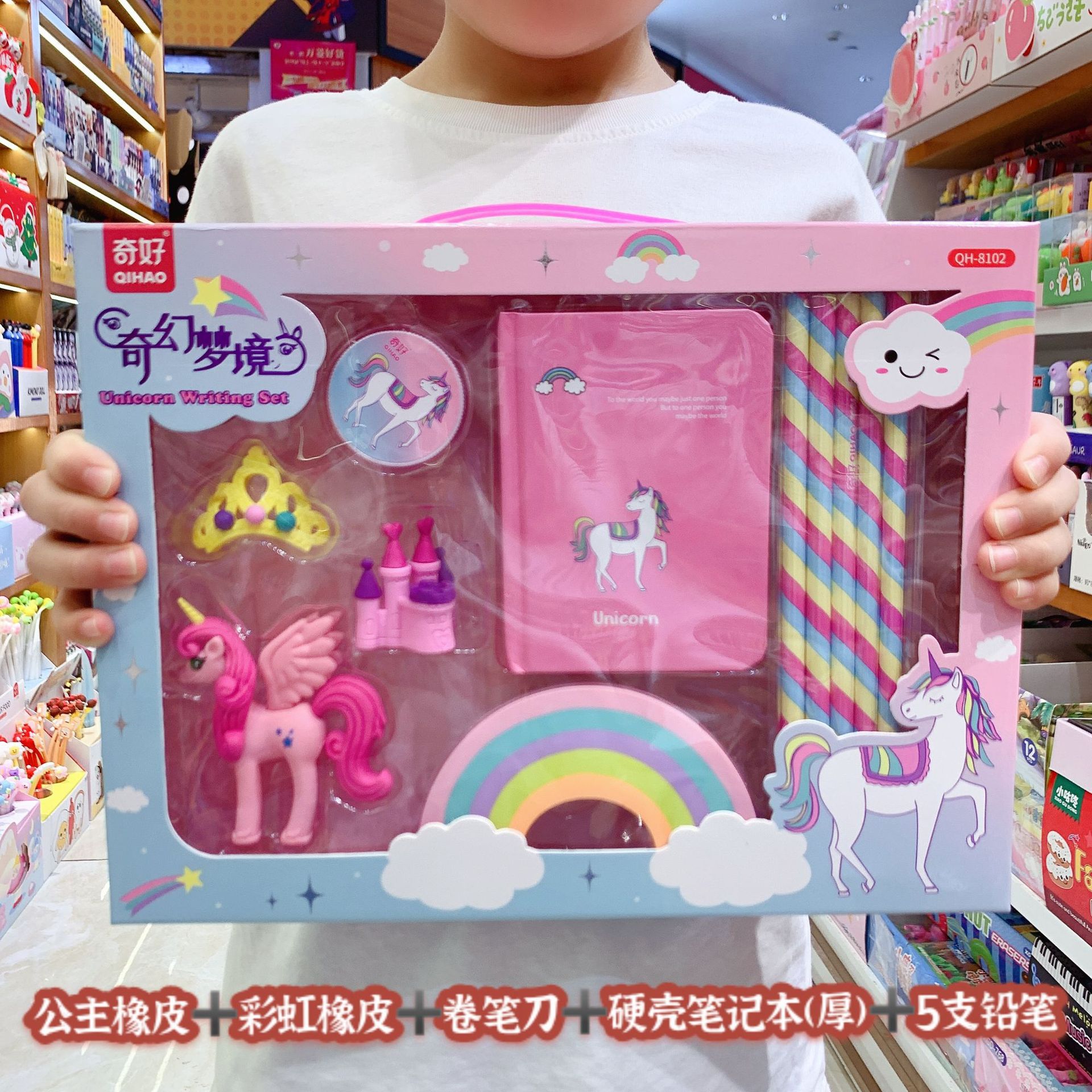ユニコーン消しゴム文房具セット高颜値かわいい少女心学生ノート六一プレゼント大礼箱