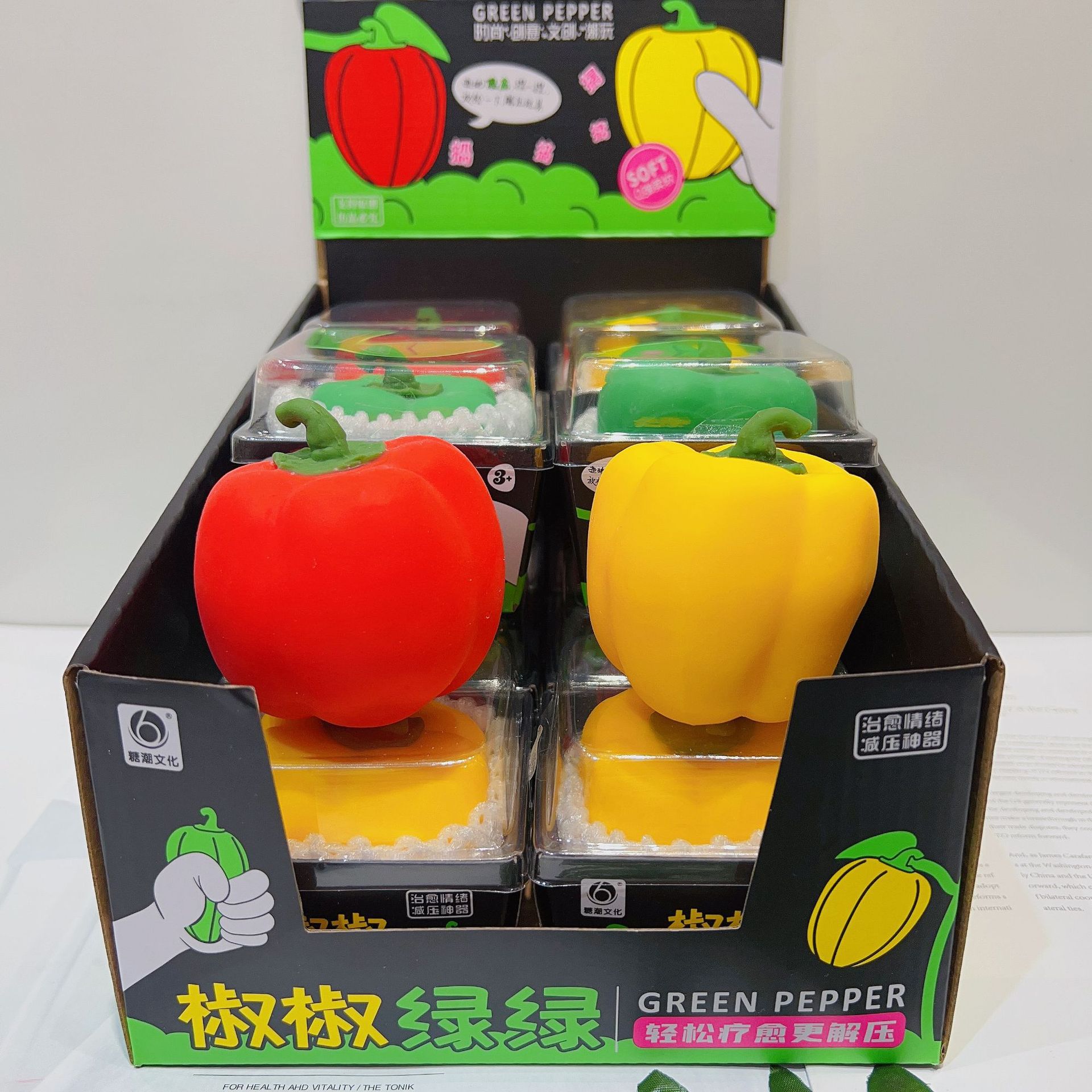 新しいモデルの野菜のピーマンのつまみの楽しみの解凍のおもちゃのかわいい野菜のピーマンの減圧のラーラーの楽なストレッチのおもちゃ