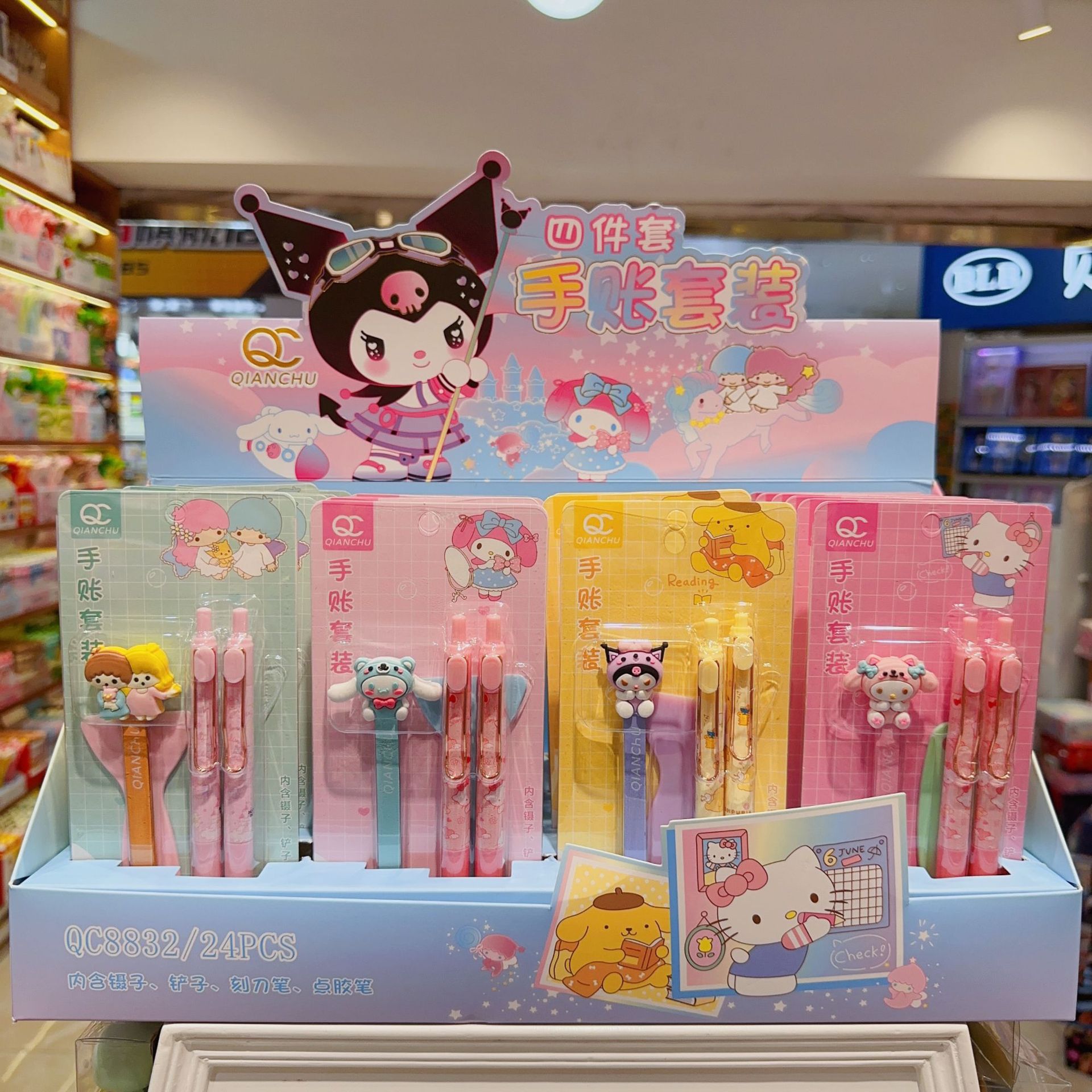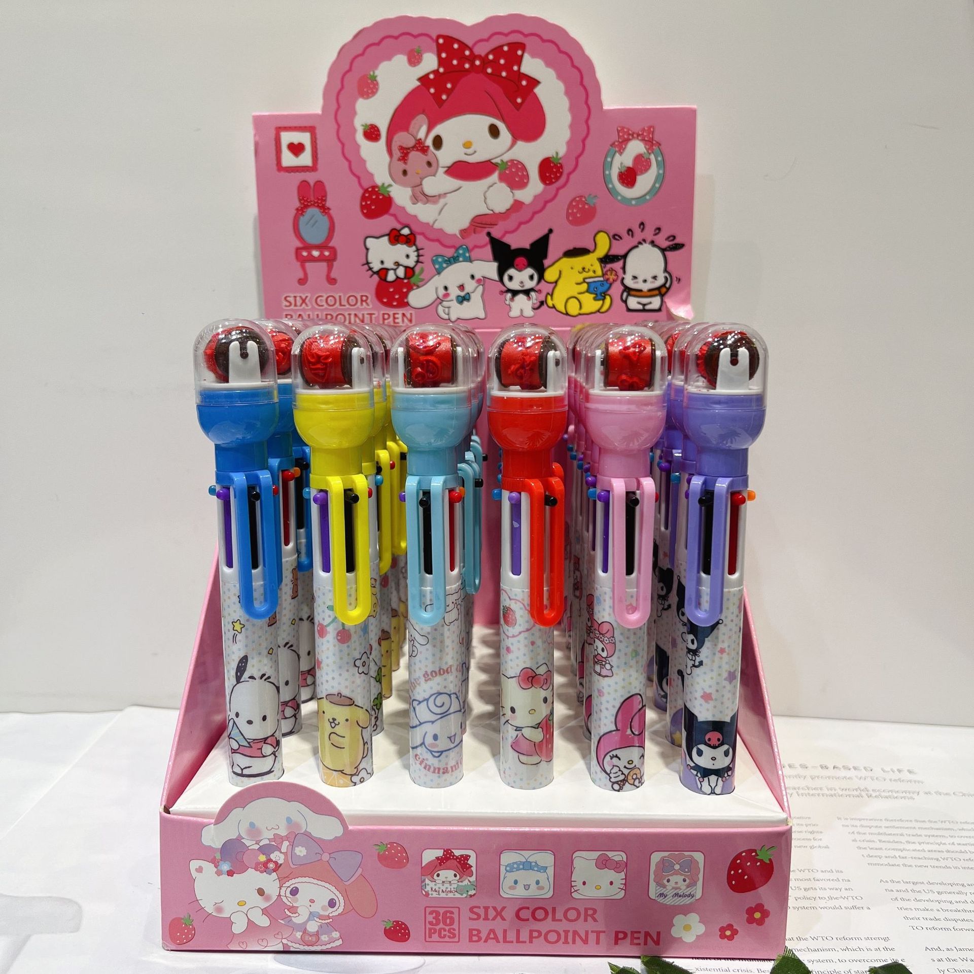 新品三麗欧六色筆かわいいアニメ少女心多色ボールペンローラー付き印鑑二合一手帳