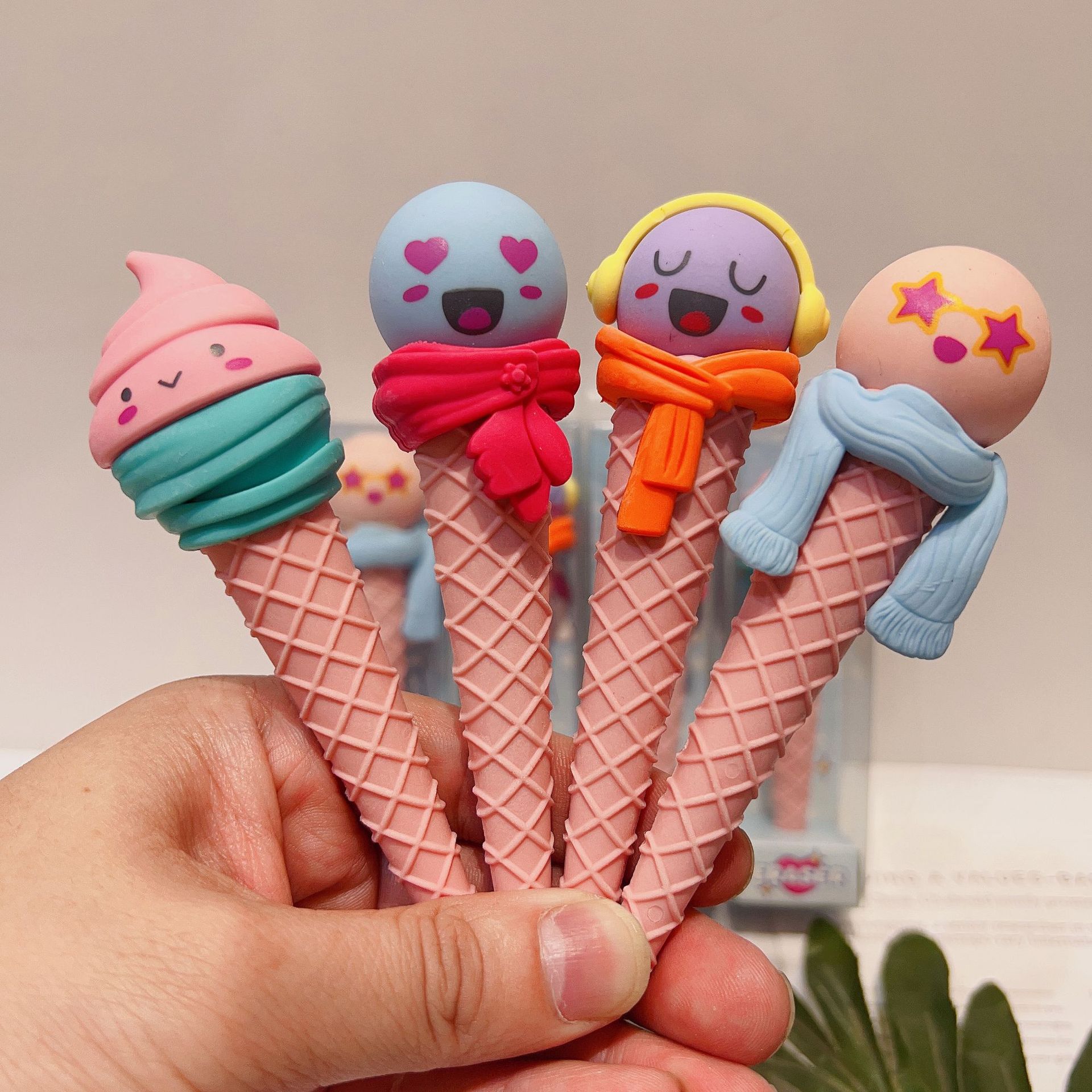 動物のアイスクリームの消しゴムのかわいいクリームの甘い筒の形の消しゴムの幼稚園の六一の贈り物をシミュレーションします。