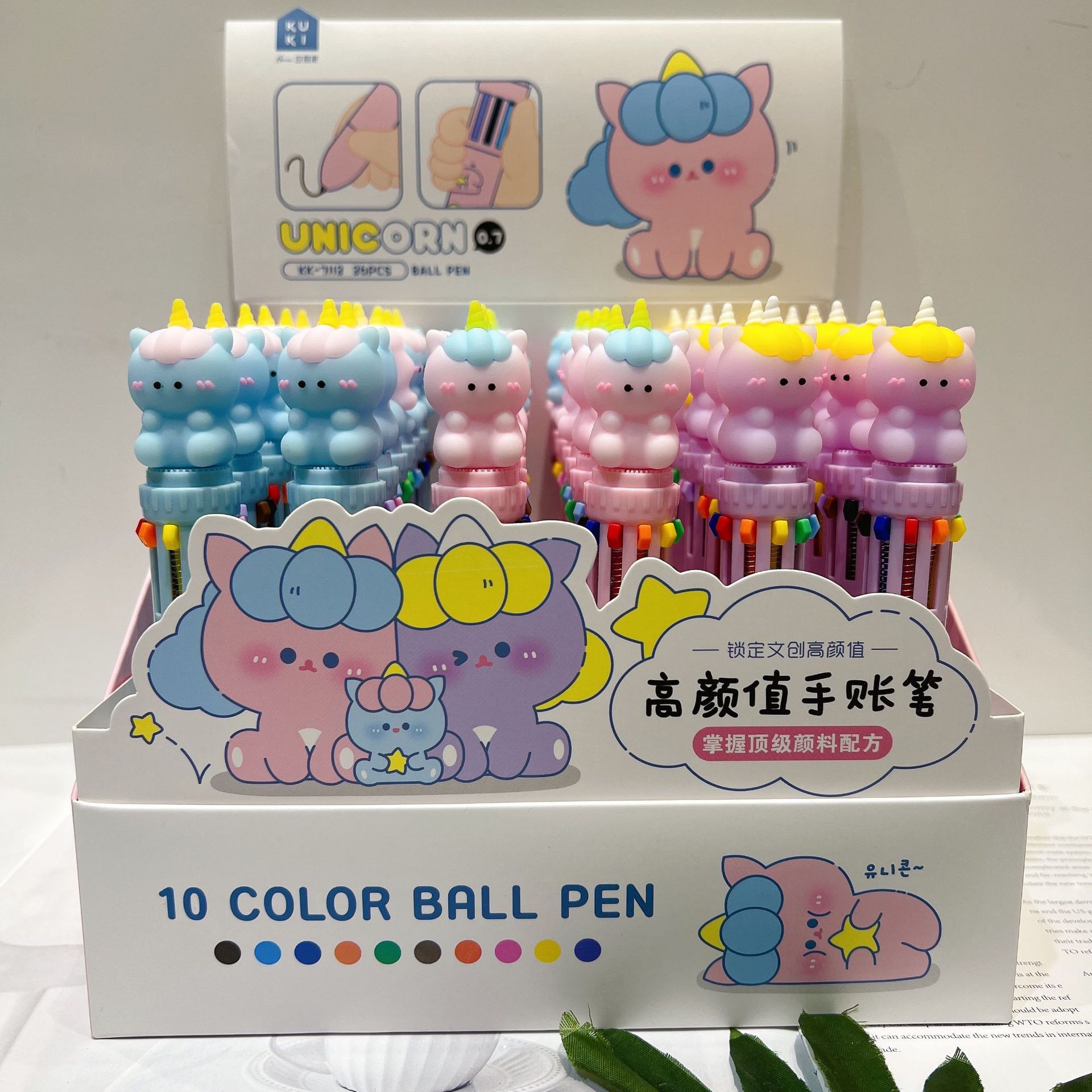新しいユニコーン十色ボールペンかわいい漫画少女心多色手帳ペンカラー押し中油ペン