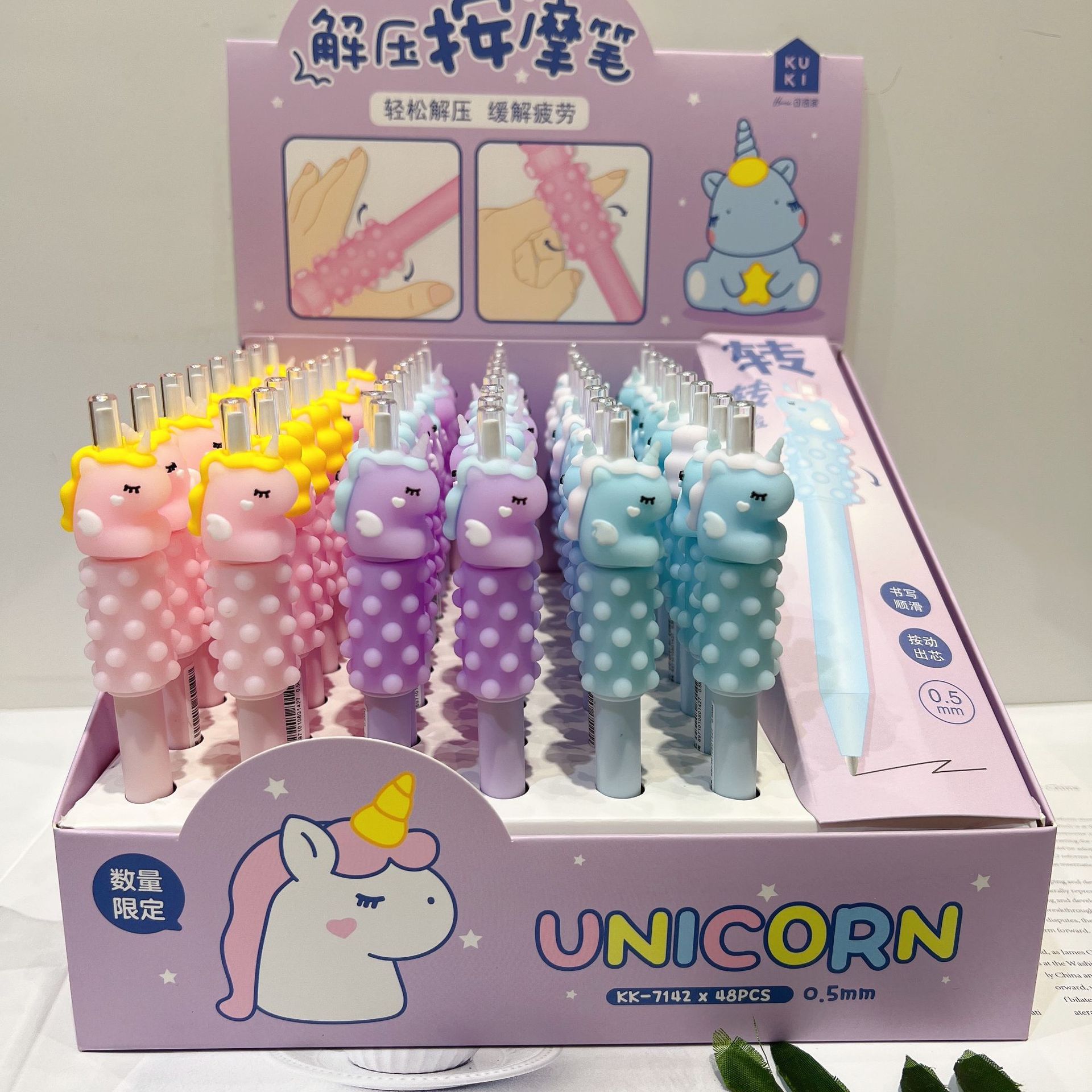 新型韓国版ユニコーンマッサージペン3dソフト萌えシリカゲル回転ペンストレス解消疲労緩和中性ペン
