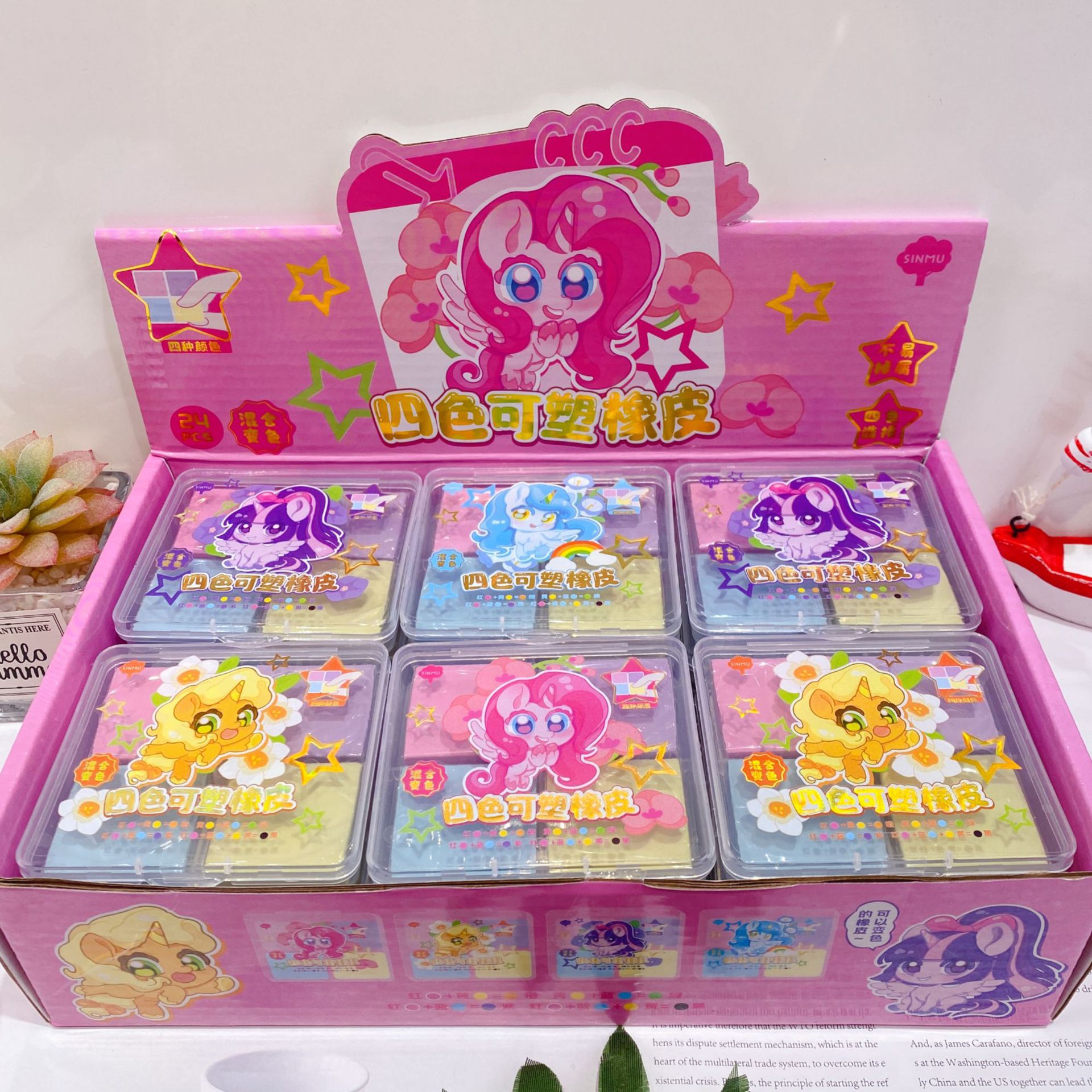 新しいレインボーポニー 4 色プラスチック消しゴムセットかわいい漫画イルカブラシ付きプラスチック消しゴムクリーン