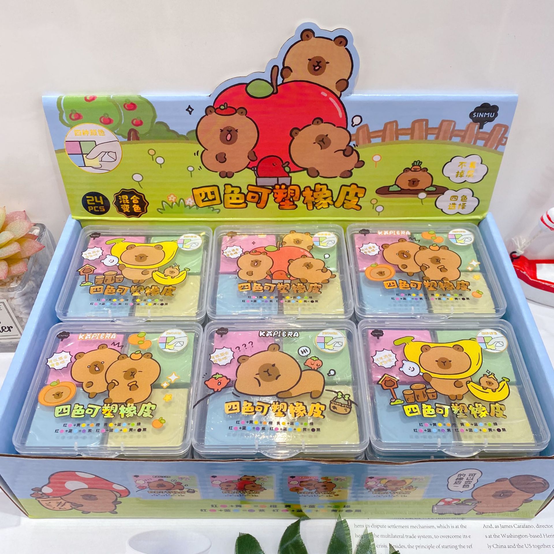 新しいカピバラ 4 色プラスチック消しゴムセットかわいい漫画イルカ描画プラスチック消しゴムきれいな