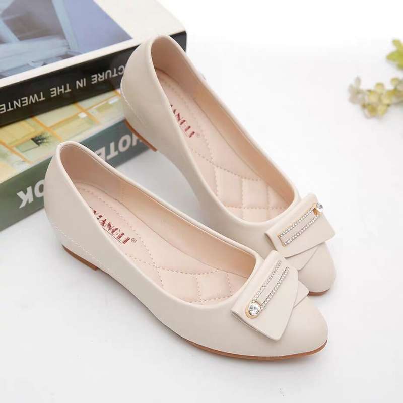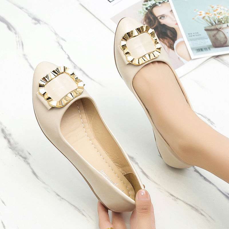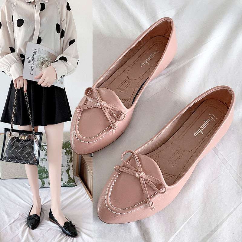 2025春夏の女性の靴の新型のテントウシューズの作業靴の先の平底の靴の女性の四季の百合の浅い口の豆の靴の女性