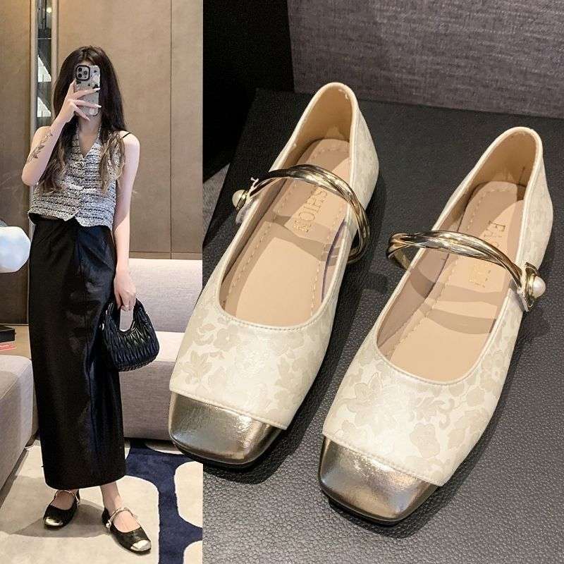 新中国式のメアリー珍靴の女性2025夏の新型の国風はスカートの気質の浅い口の靴の太いハイヒールを配合します。