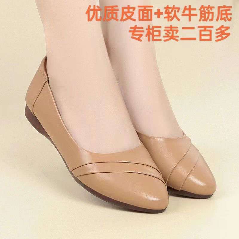シングルシューズ女性2025春の新しい母親靴は快適で柔らかい底のカジュアルシューズの平底豆靴の浅い靴に合わせている