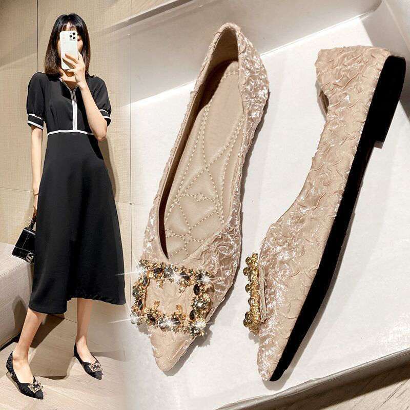 浅口の先の靴の女性の香風の平底の新型の韓国版のファッションの豆の靴の方は柔らかい底の快適な怠け者の靴を掛けます。