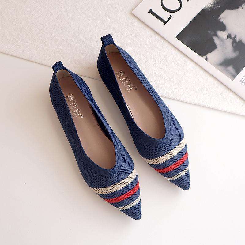 靴の女性2025春夏の新型ニット弾力布の先の平底に豆の靴を合わせます。