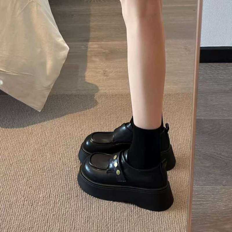 厚底ベルクロ革靴女性用 2025 春の新作小柄な通勤靴英国スタイルのローファー