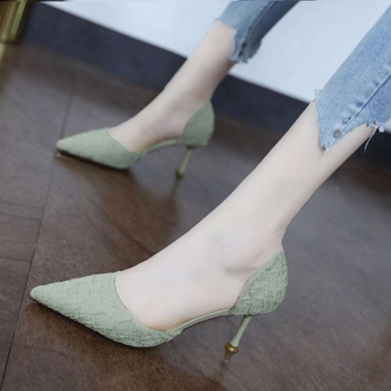 小さな新鮮な妖精スタイルのハイヒール 2025 新作春夏多用途インフレンチグリーンスティレットシューズ