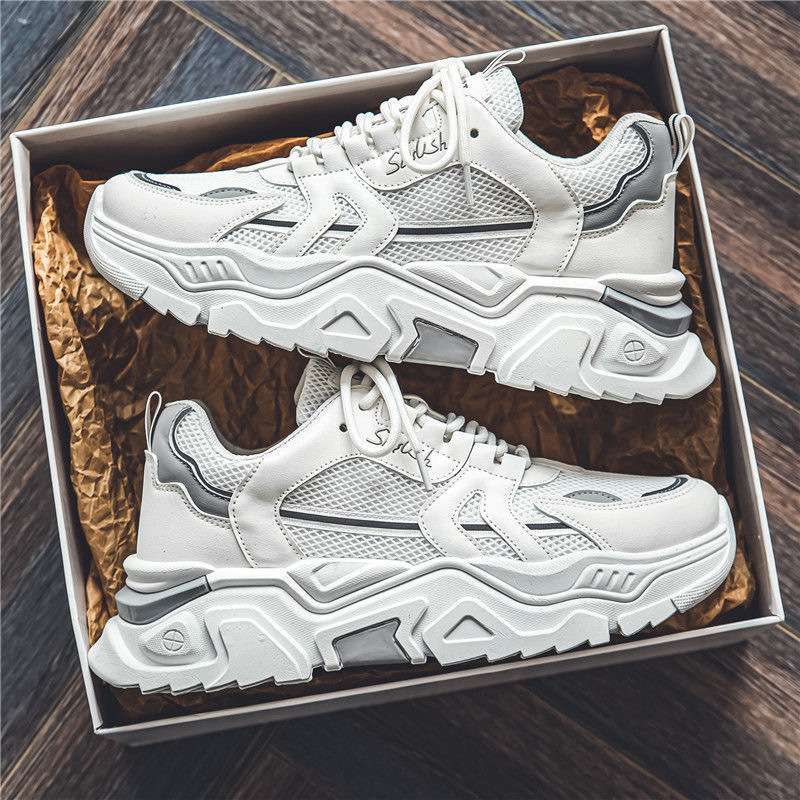 春夏の紳士靴、新しい厚底スポーツシューズ、男性、ティーンエイジャー、学生向けの多用途シューズ、インお父さん靴、白い靴