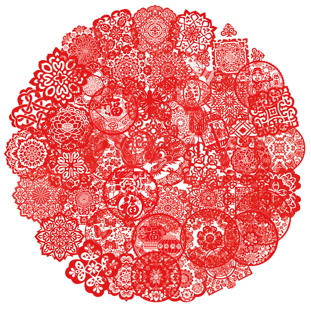 50枚の春節の窓の花のシールの携帯のケースのノートの窓のスーツケースの双透PETの材質の装飾は絵を貼ります。