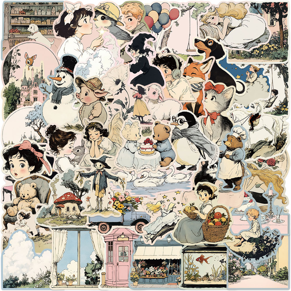 50枚のかわいいカードイラスト通人物シール冷蔵庫携帯ノート日記封筒シール装飾シール