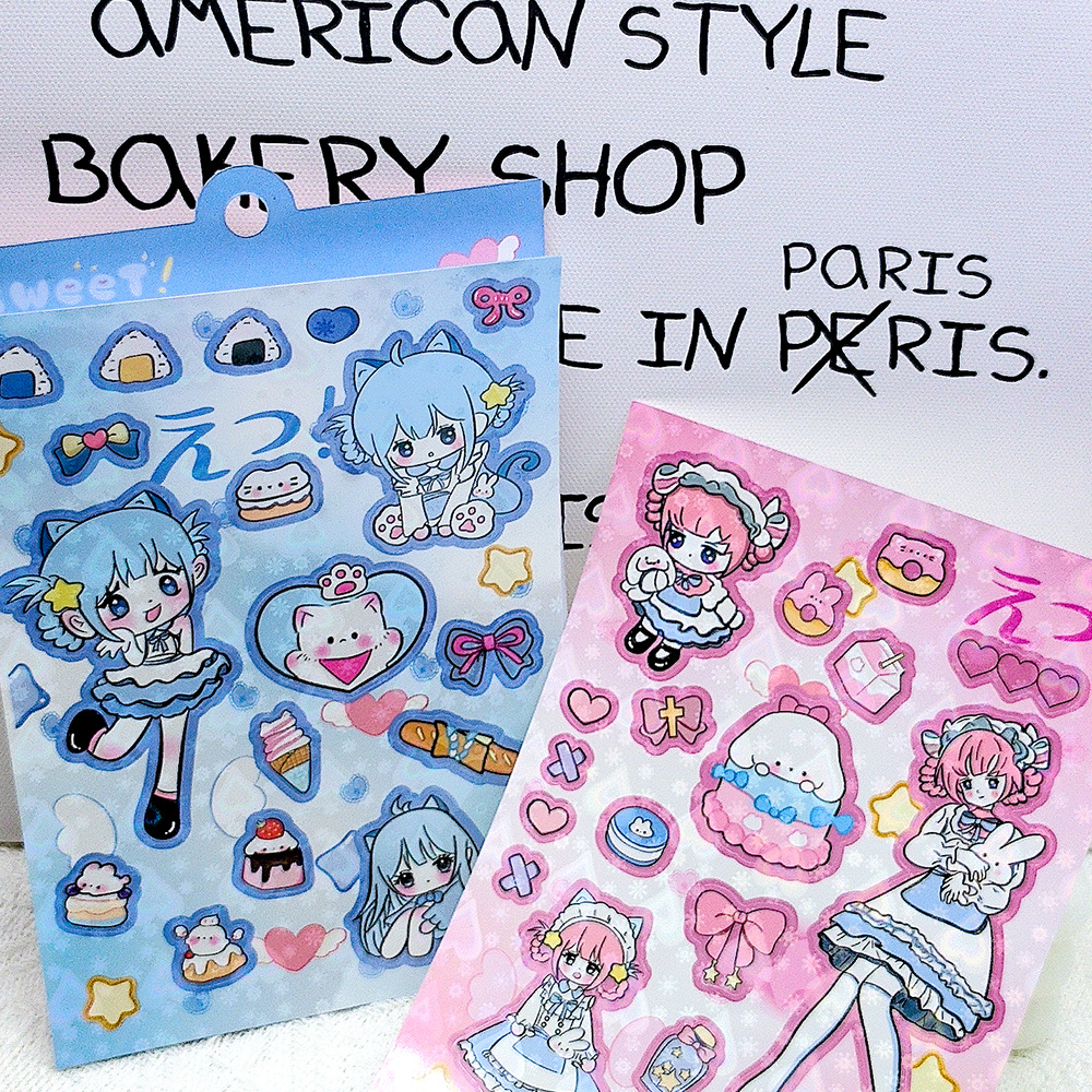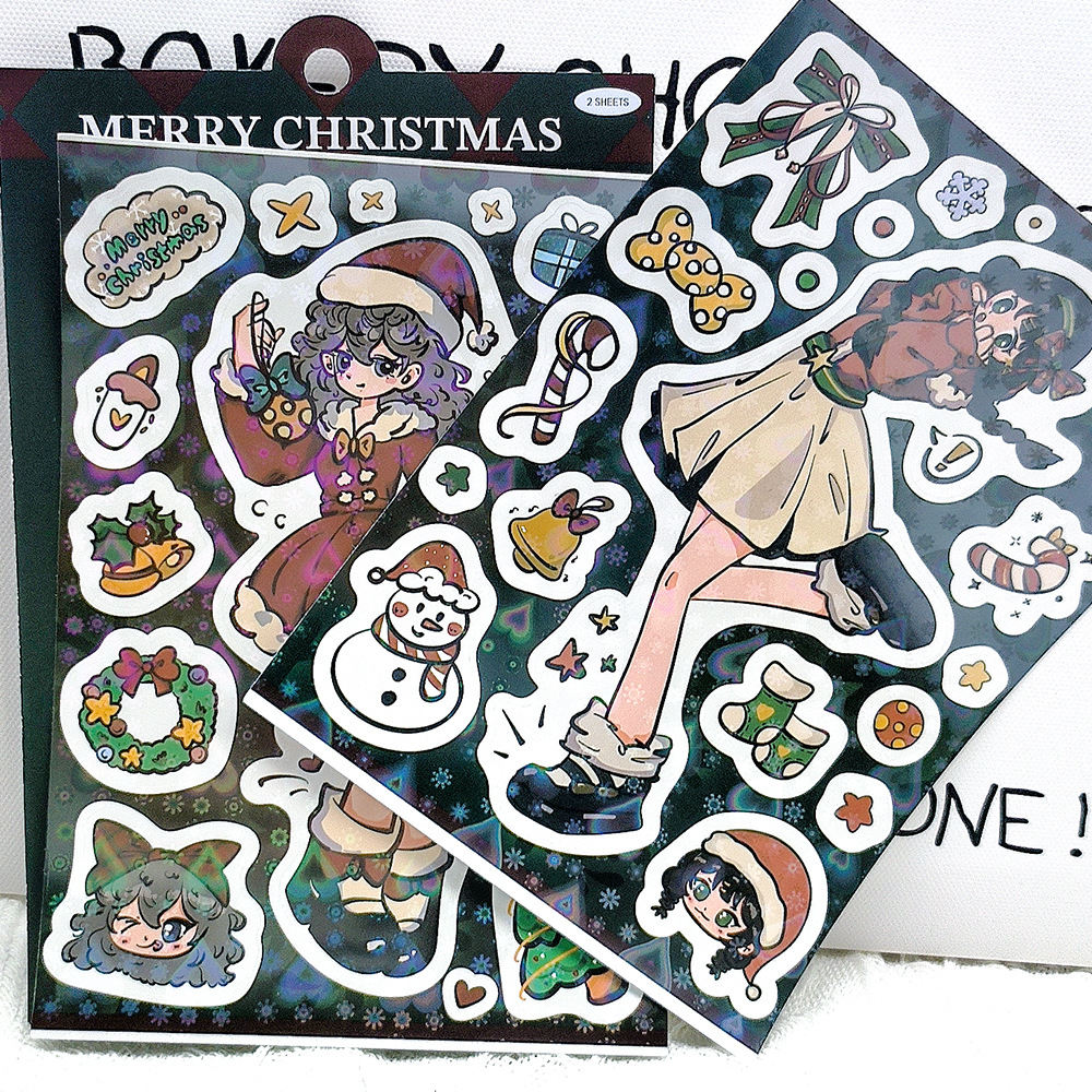 2枚クロスボーダー新作クリスマスガール漫画ステッカーノートスーツケースダブル透PET素材DIYステッカー