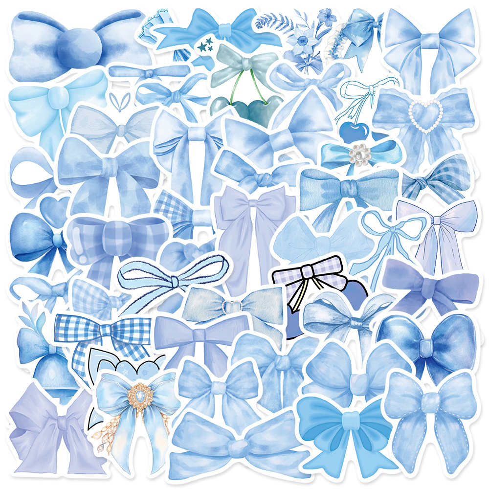 50枚の青いアニメの蝶結びのシールDIY手帳のスーツケースのコップの携帯電話の装飾は絵を貼って卸売りすることができます。
