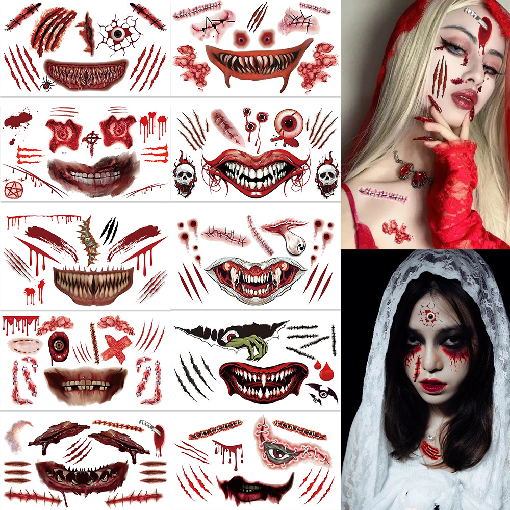 10枚の国境を越えた新型ハロウィーンの恐怖の傷跡の紋章防水パーティーはパーティーのプレゼントの顔を責める