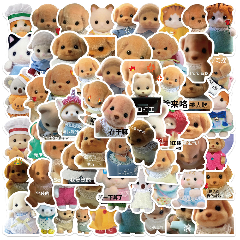 55枚のかわいい人形Calico Critters漫画ステッカースーツケースノートブックスケートボード装飾ステッカー
