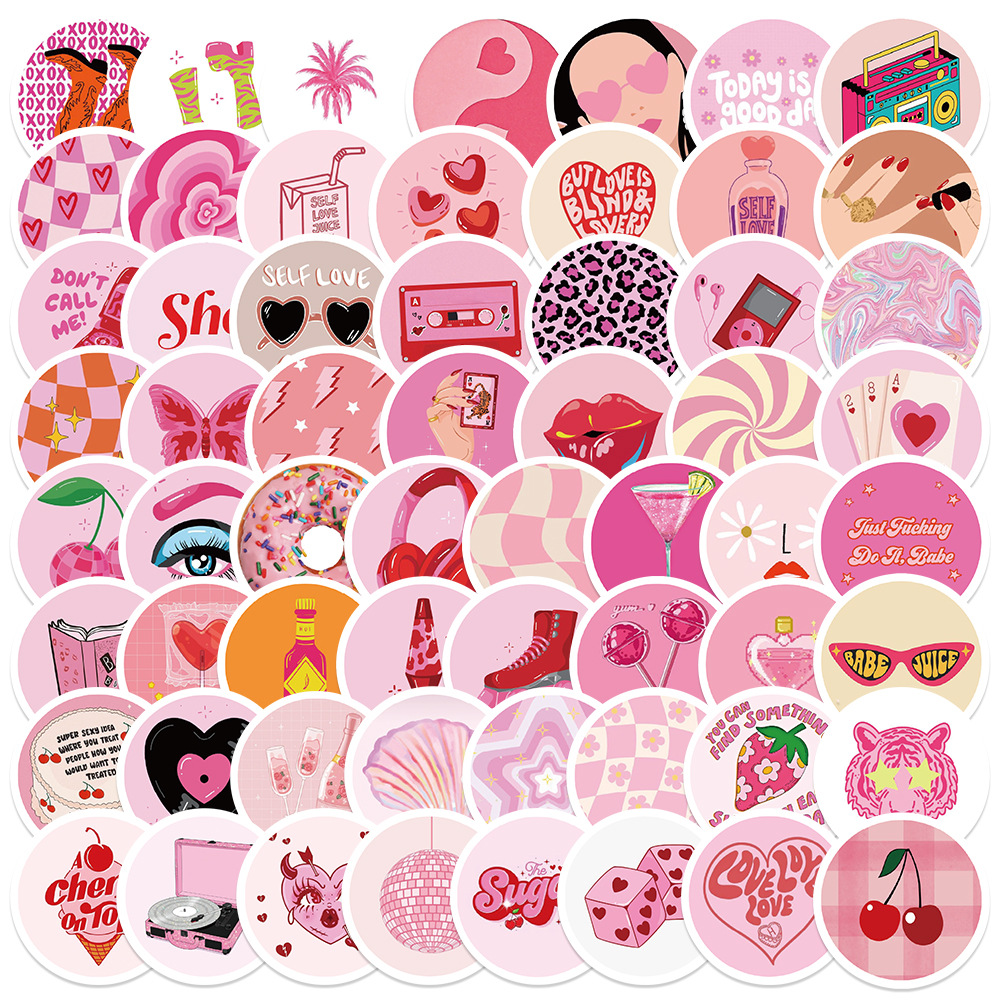 90sアメリカンGroovyピンク漫画落書きシールトランクノートカップ防水DIYステッカー60枚