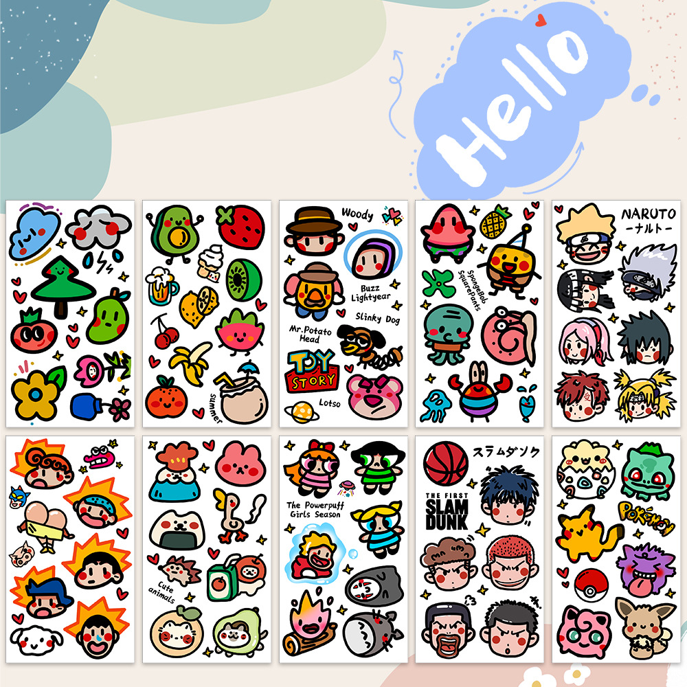10枚の国境を越えたアニメのオールドスクールかわいいアニメキャラクターのタトゥーがパーティーのプレゼントを責める