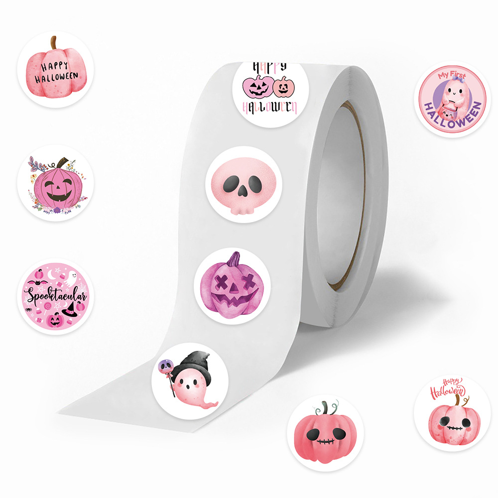 500枚/巻き巻きステッカークロスボーダーピンクハロウィンテープステッカー防水手帳素材封筒シール