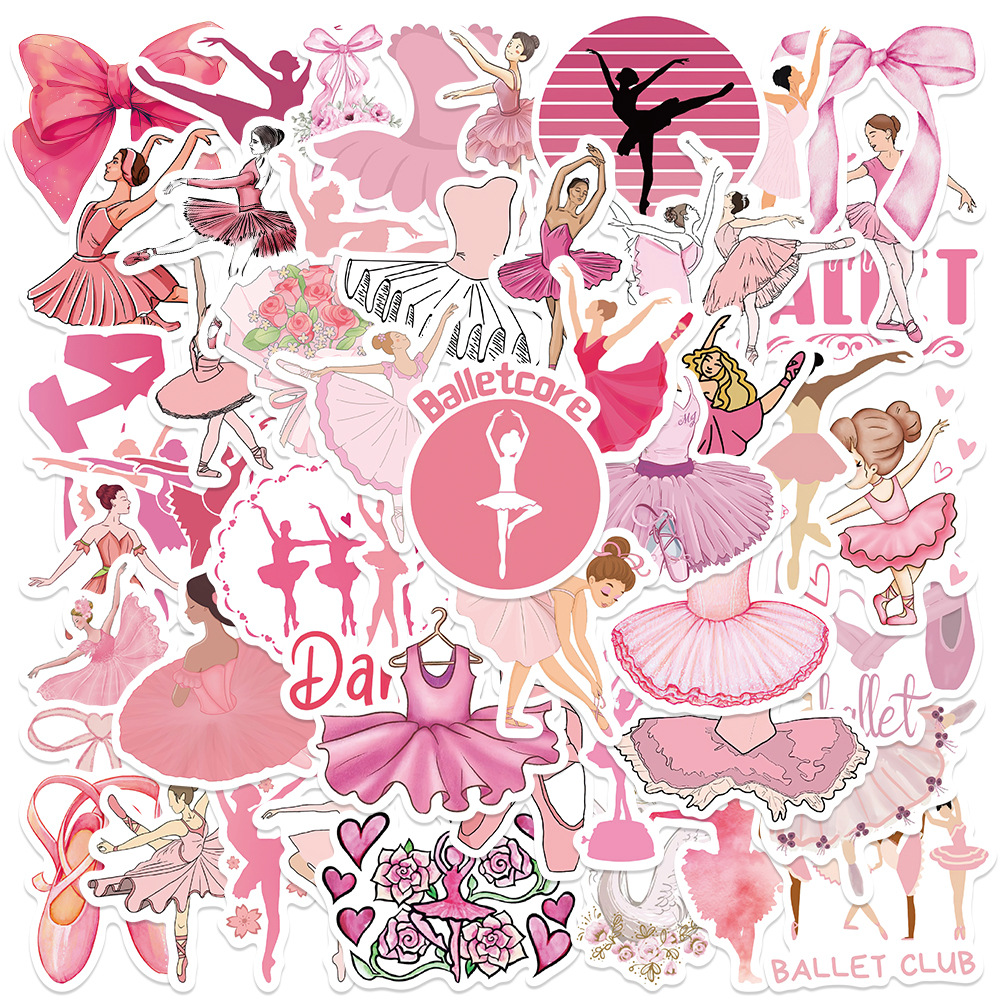 50枚クロスボーダーピンクバレエ漫画落書きステッカースーツケースノート窓花携帯電話防水ステッカー