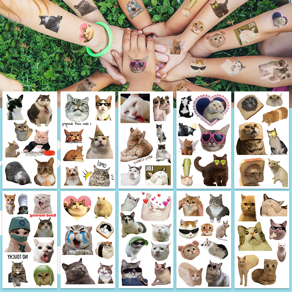 10枚の国境を越えて人気のMEMEかわいい猫のタトゥーが男の子のパーティーの奇妙なパーティーのプレゼントの顔が卸売りできる