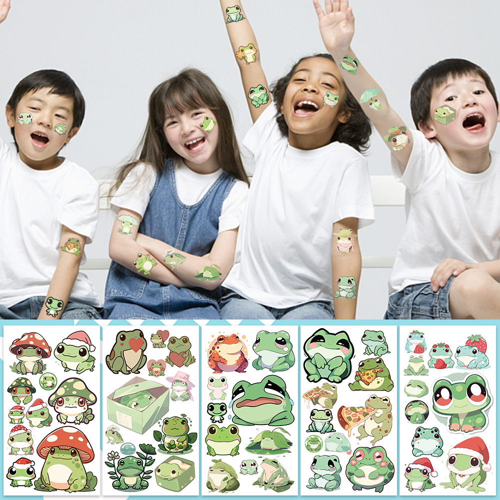 10枚の国境を越えたアニメかわいいカエルの子供のおもちゃのタトゥーは防水パーティーを貼ってパーティーの装飾プレゼントを責める