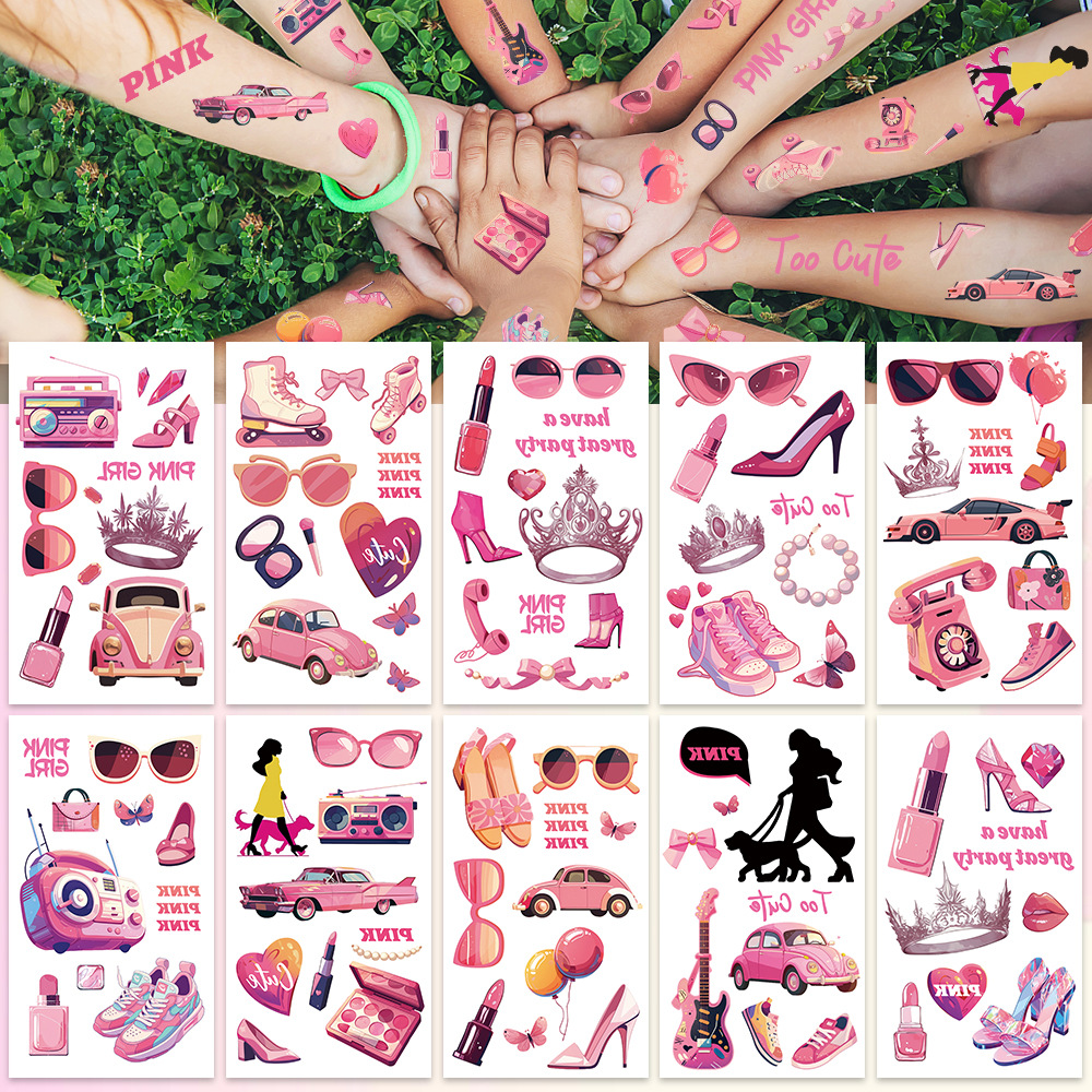 10枚の国境を越えたピンクの少女パーティーシリーズのアニメのタトゥーは防水趣味でパーティーのプレゼントを卸売りすることができる