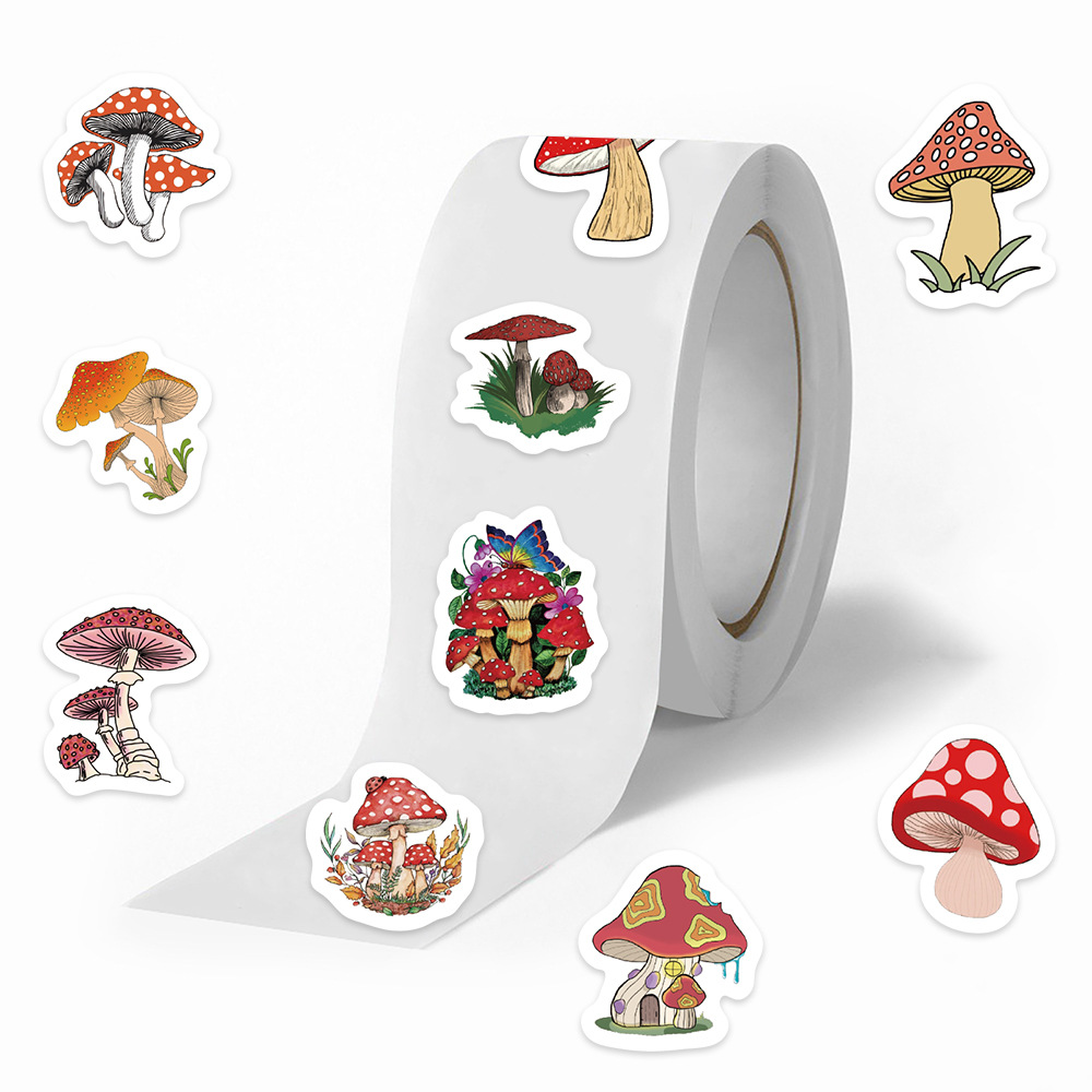 500枚/巻き巻き巻きステッカークロスボーダー人気テープ漫画きのこステッカー手帳DIY素材封筒シール
