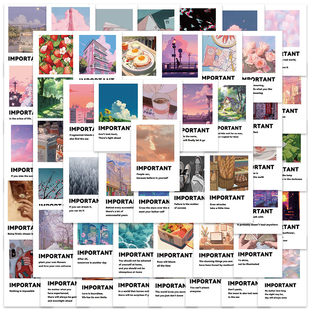 50枚漫画インスタ愈し系シンプルな景色落书きステッカースーツケースノートpc携帯电话DIYステッカー
