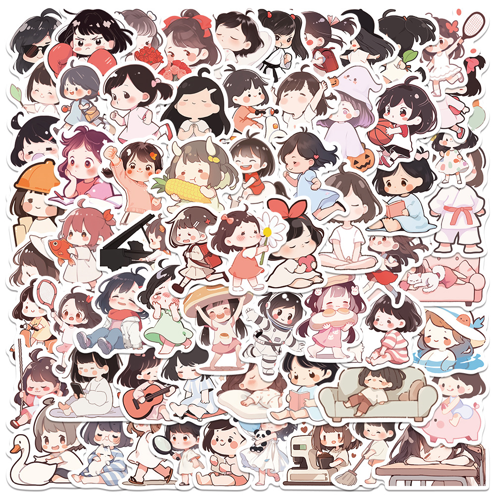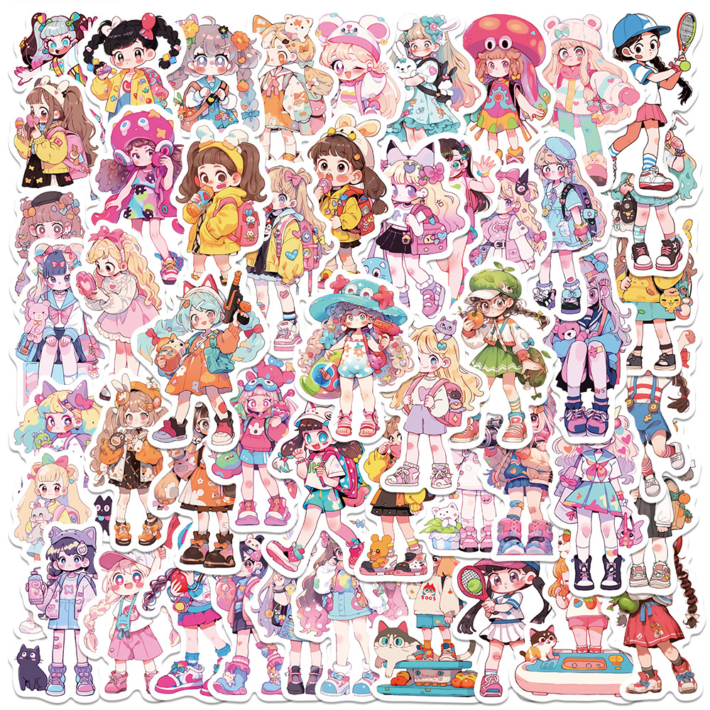 64枚のソフト萌えかわいいアニメ少女落書きシールdiy装飾ノートパソコンのコップ防水貼り絵