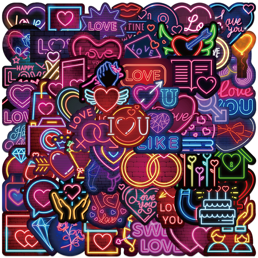 64枚ネオン風バレンタインシリーズ落書きステッカースーツケースノートギター携帯電話防水ステッカー