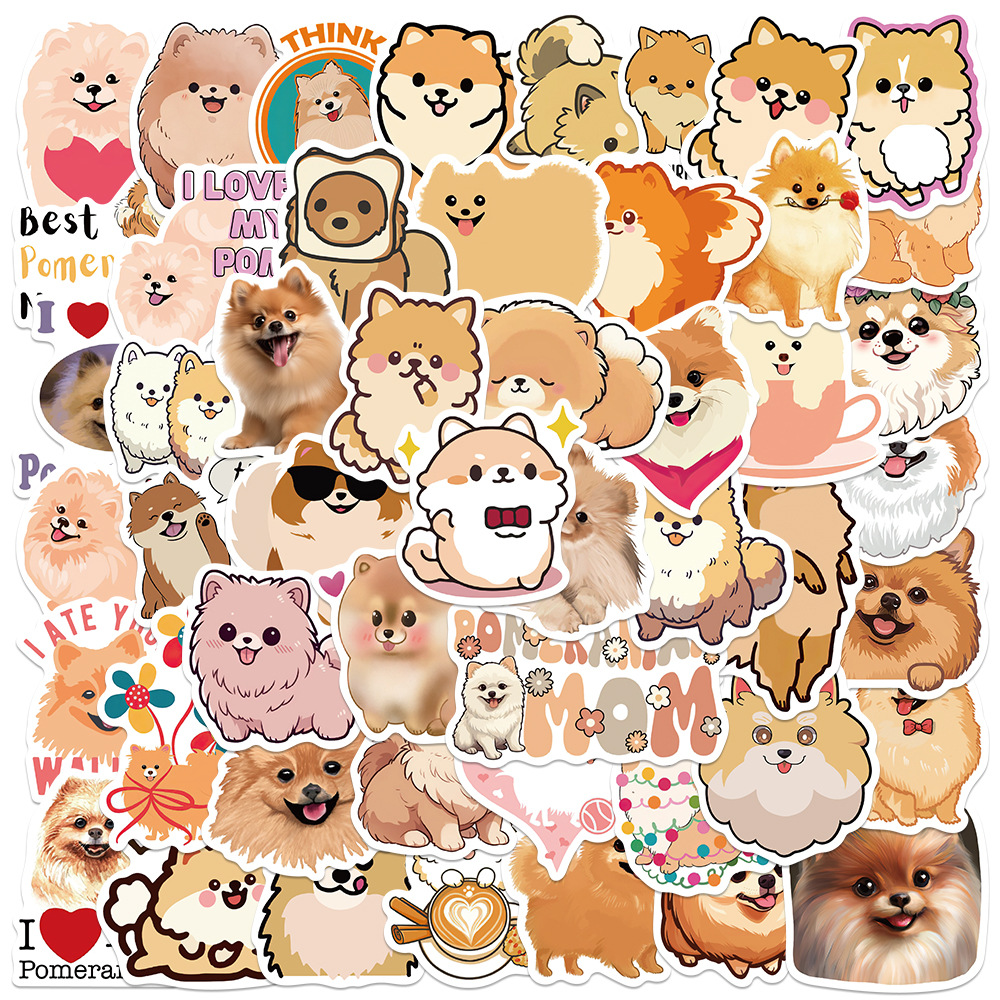 50枚のかわいい漫画の犬の博美の落書きのシールのスーツケースのノートのコップの携帯電話の防水の装飾は絵を貼ります。