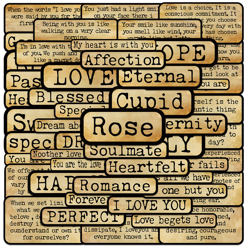 50枚レトロ英単语フレーズラブローズ落书きステッカースーツケースノート防水diyステッカー