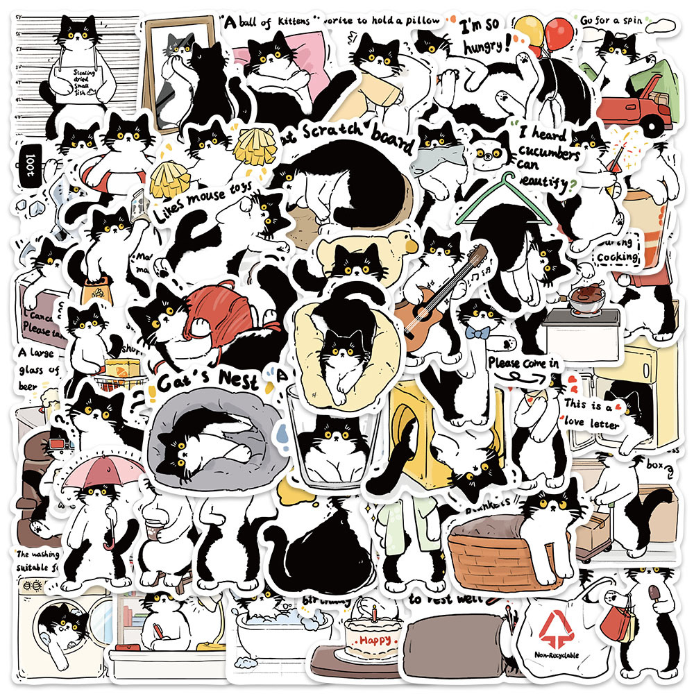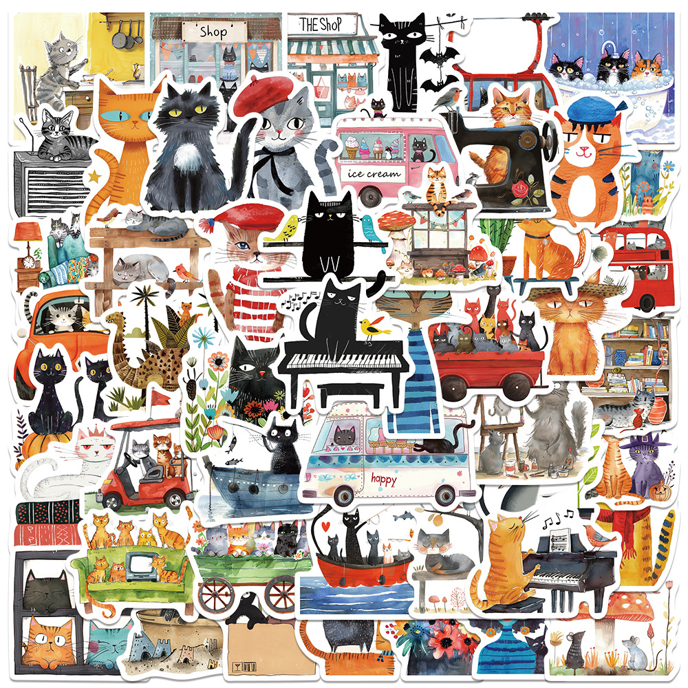 50枚の面白い芸術猫漫画落書きシールdiy装飾スーツケースノートギターコップ貼り絵