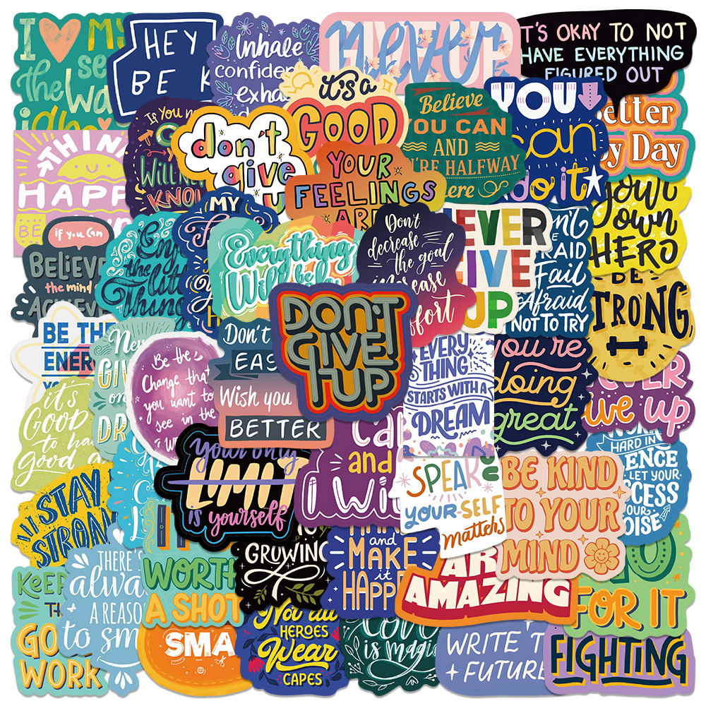 50枚のクロスボーダーの古典的なデザインの励ましの英語のフレーズの漫画の落書きのシールのスーツケースのノートの防水は絵を貼ります。