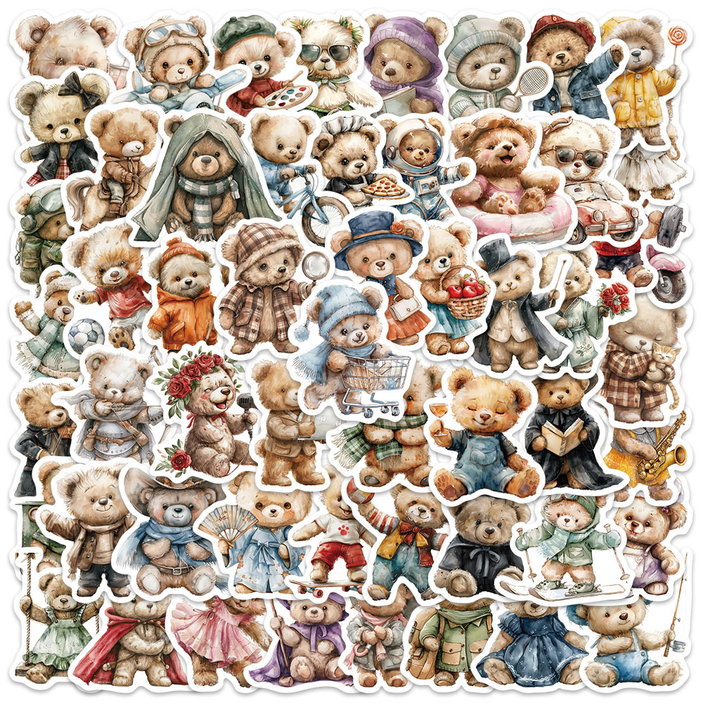 55枚レトロかわいいテディベアステッカースーツケースノートギタースケートボード防水diy装饰ステッカー