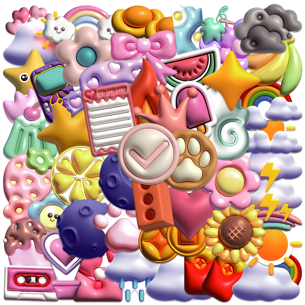 50枚の3d膨張アイコン漫画かわいい落書きシールスーツケースノートギター携帯電話防水ステッカー