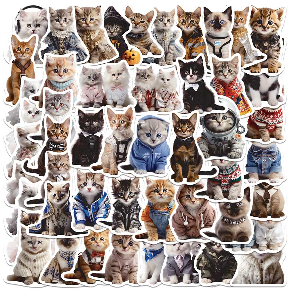 50枚の様々なスタイルの猫猫漫画かわいいステッカースーツケースノート携帯電話防水pvcステッカー