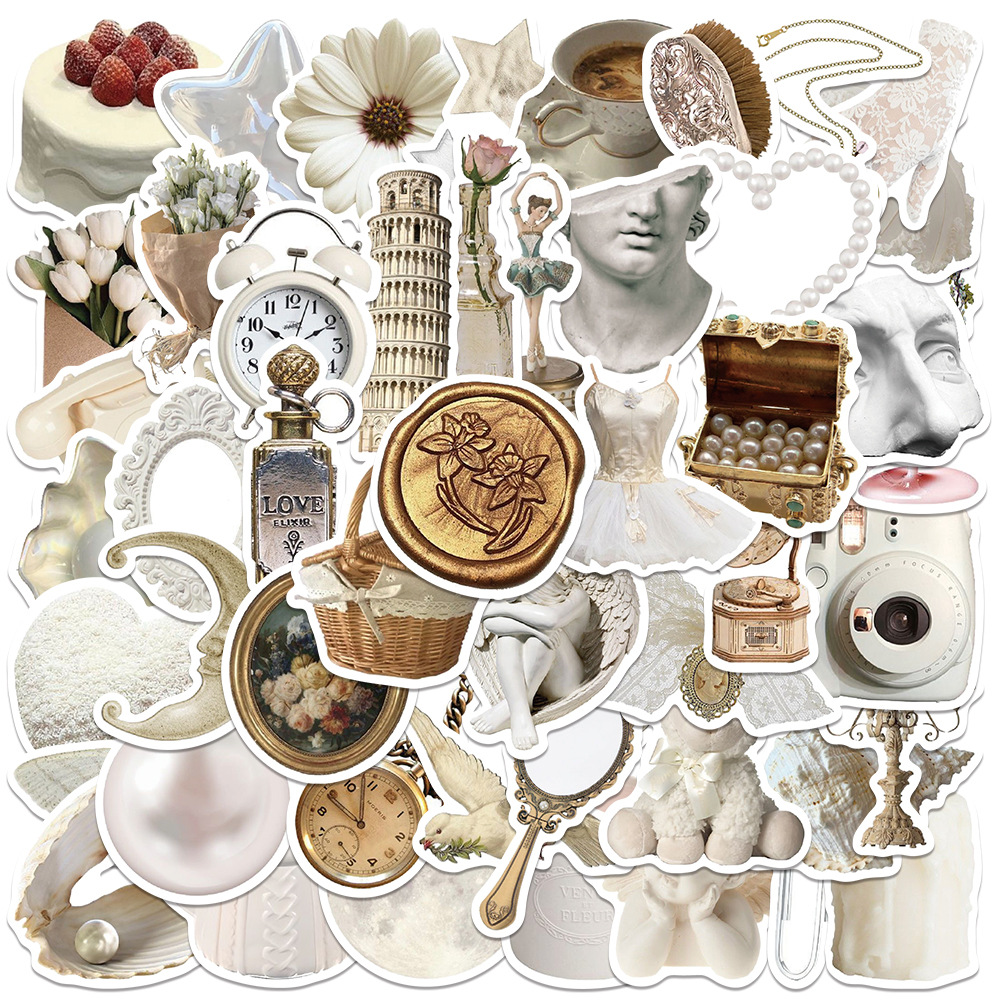 50枚ホワイト优しいインスタ风シンプルアートステッカースーツケース本パソコン携帯电话防水diyステッカー